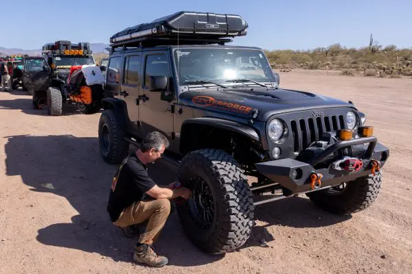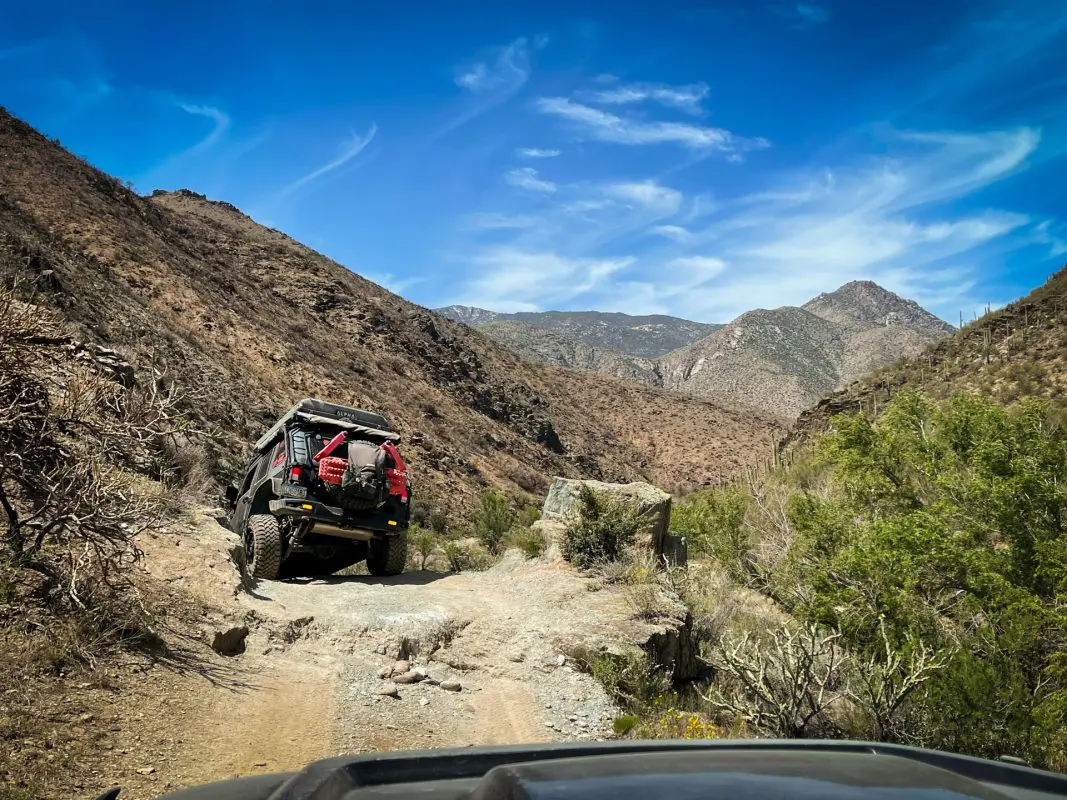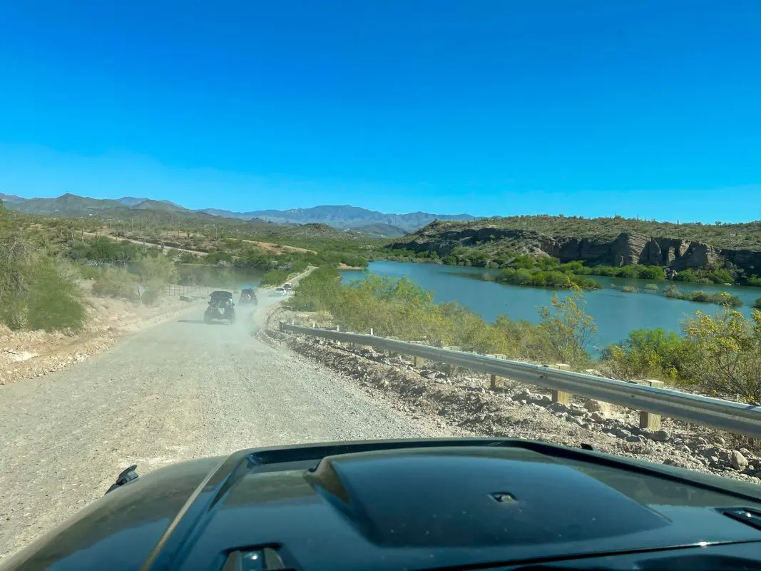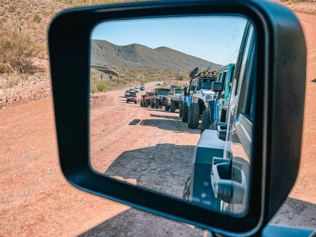 We kicked off the ride by meeting at Fry’s in Peoria, AZ, which would be our last chance for supplies and fuel before hitting the trail. This was our first chance to get to see all of the rigs that would on the ride with us, and it was definitely an experienced group! Shortly after pulling out from Fry’s, we made our way to Lake Pleasant to finally hit the desert. Here, we aired down and put our vehicles into “adventure mode”, which is a fancy way of saying, “storing everything for bumpy roads.”