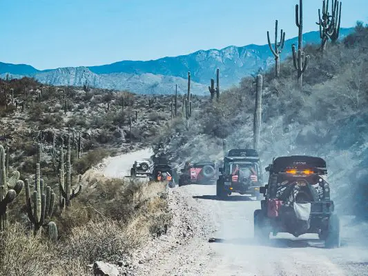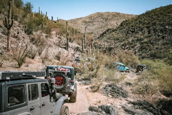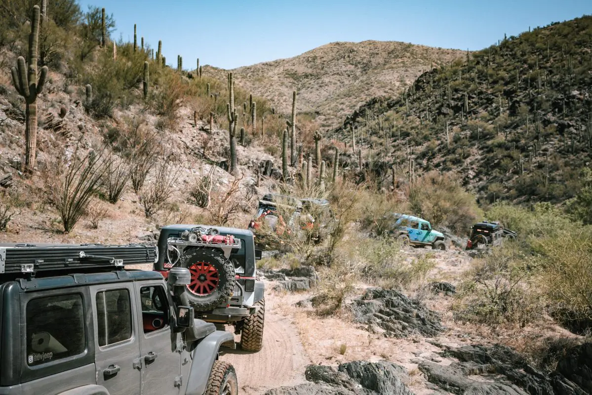 I can’t think of a better way to torture test clutch products than to put together a pile of heavily loaded vehicles and run them through the hills and rocks of Arizona.