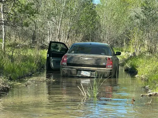 The third day on this trip would be a pretty short one with some more amazing scenery on the way out. We also came across an interesting find – a Chrysler 300 which turned out to be not quite as amphibious as the driver hoped. #DesertLife