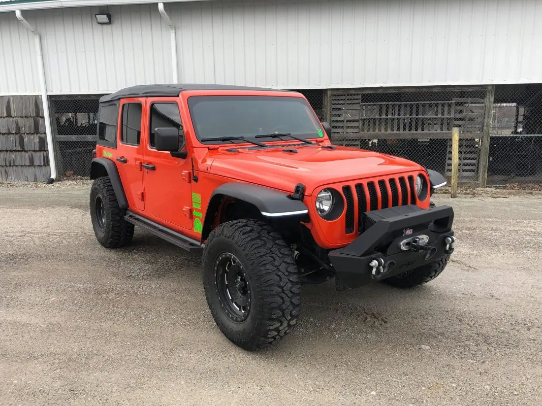 Here is what your Jeep JL Sport will look like with Jeep JL Rubicon flares installed. For reference, this jeep is stock height and running 35″ tires.