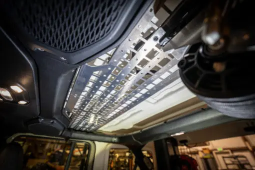 Unlock the unused overhead space in your Jeep with this rugged Rear Overhead MOLLE Shelf designed specifically for 2018–2023 Jeep Wrangler JLU and Jeep Gladiator JT models.