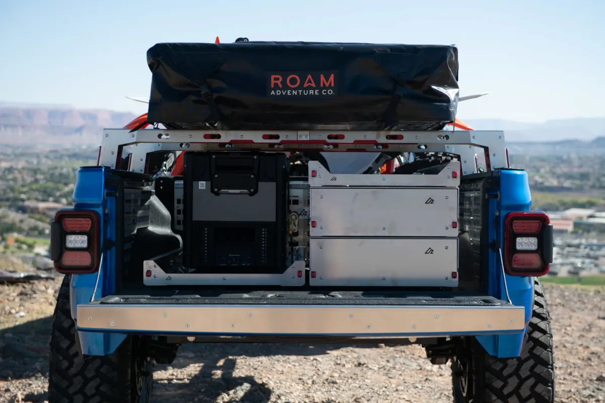 Illuminate your adventure with the ATK’s integrated lighting harness (Gladiator only, at the moment), and keep your rear auxiliary battery charged and ready for anything with the included charging harness.