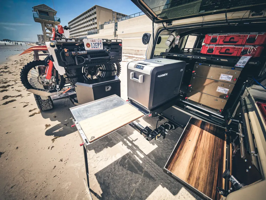- Flex Space – area used for attaching various modules we will be building (ex. dirt bike tray, mountain bike mounts, refrigerator box, diesel heater mount, etc.