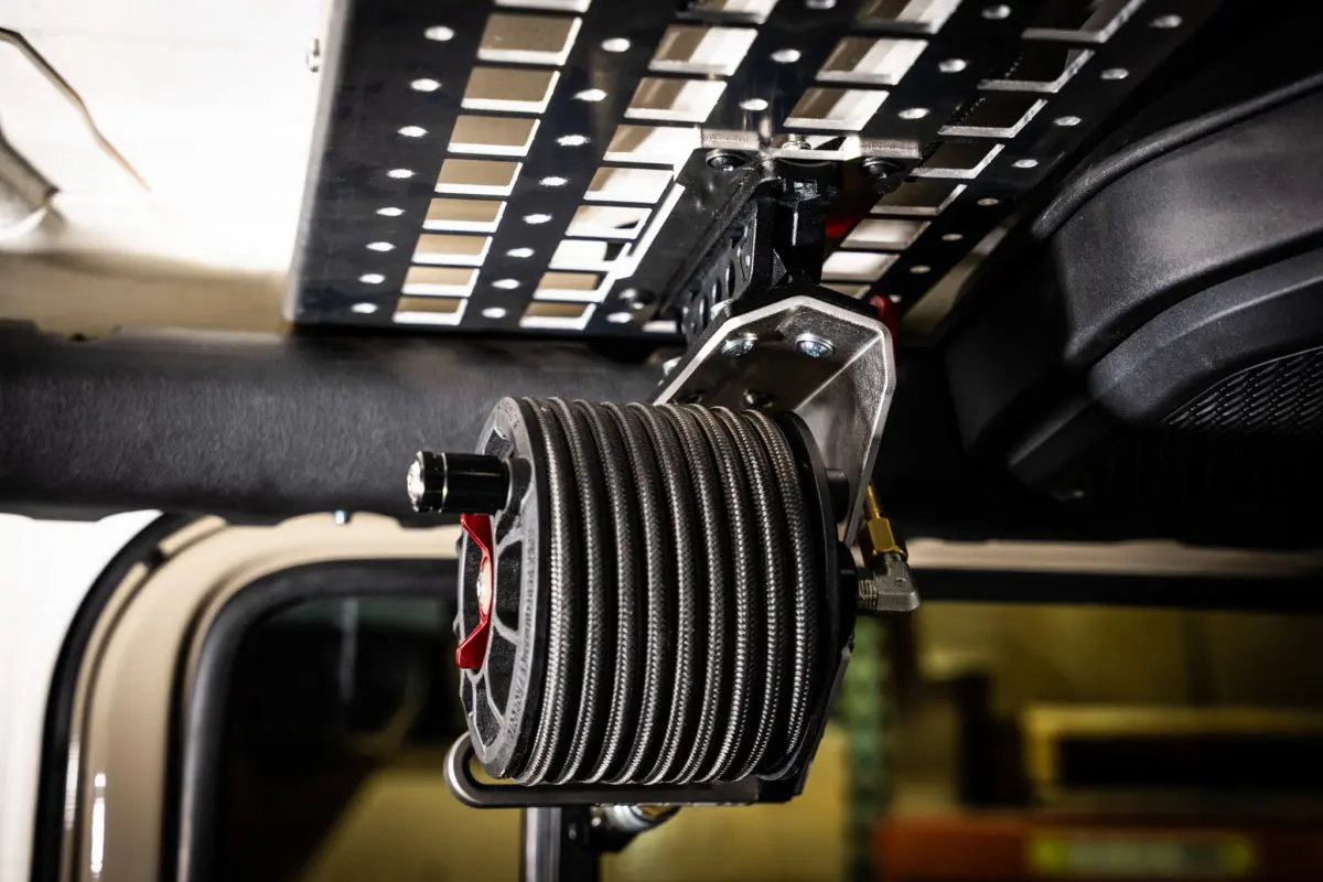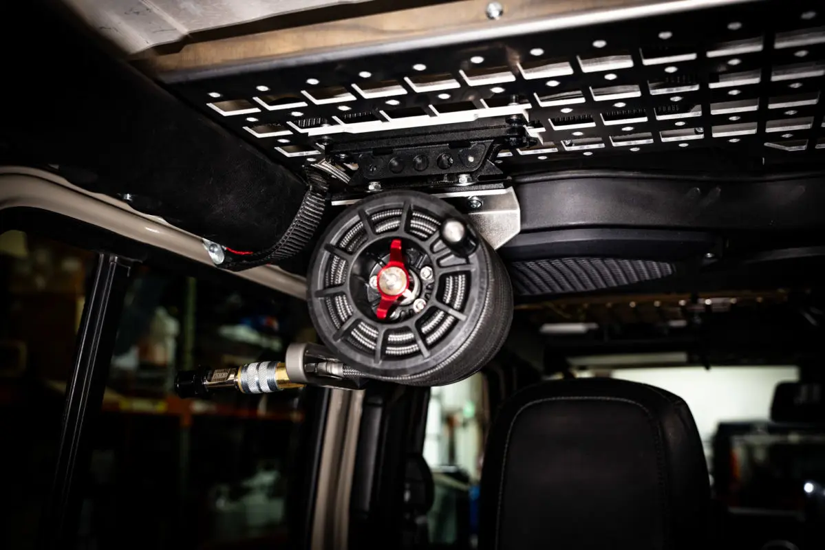 Take your organization to the next level (pun intended 😉) with the Apex Reel CRS Hanging Mount, designed to securely suspend your reel from our Overhead MOLLE Panels or any other universal mounting location. Whether you’re looking to optimize storage in your overlanding rig, workshop, or garage, this mount provides a strong, lightweight, and corrosion-resistant solution.