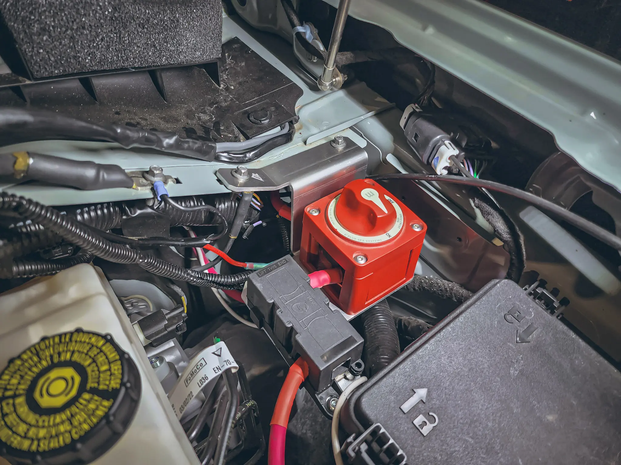 Thanks for fabricating this bracket, very helpful. I wanted to provide some unstallation tips for others. I installed the switch on a 2023 Bronco, Black Diamond 2.3l, manual trans. So I found the bracket to conflict with a hose which connects to the brake fluid reservoir. I didn’t like the idea of the bracket rubbing against the hose for the brake system (seems like an important system 🙂 ). I didn’t install the fuse, so I cut-off the part of the bracket which would hold the fuse, keeping the part of the bracket which holds the switch…easy, now no conflict. Next, the holes in the chassis which the bracket is designed to attach to, have unthreaded nuts welded on the under side, so the provided bolts are too large to go through the holes. I used a 6mm-1mm tap, and threaded the bolts welded on the chassis. Now the provided bolts thread into the bolts, the bracket is held nicely…Bob is your uncle, and it all looks good. I think another way forward would be to use the self-threading 6mm bolts that Ford uses (American Adventure lab…just provide two of these, and no tapping would be necessary).
