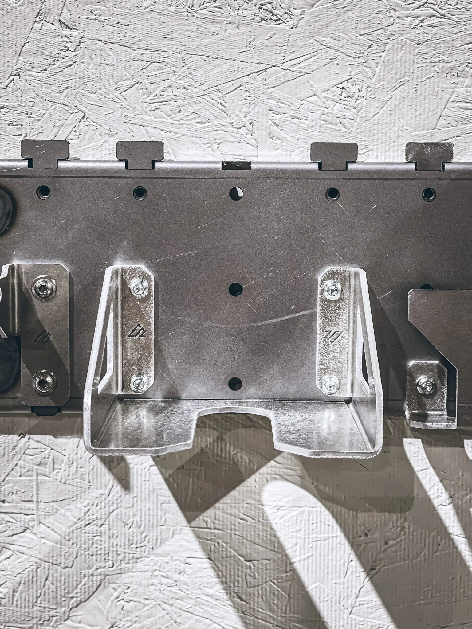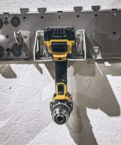 These brackets allow you to hang your drills/power tools up in a variety of ways so that you clean up your workspace and have more space for your projects!