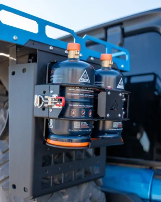 The Dual 1LB Propane Kit is a complete, trail-ready propane setup in a single part number. One Dual 1LB Propane Tank Mount in Textured Black, two Ignik Pounder refillable cylinders, and orange edge molding – fully assembled and ready to install. The mount is laser-cut from 5052 aluminum, powder-coated in-house, and built around the Ignik Pounder from the start. The cylinders are DOT and UL certified, refillable at any standard propane fill station, and engineered to stay on your rig – not end up in a landfill. Whether you’re bolting it to a Spare Tire Platform, a MOLLE panel, or dropping it into a drawer, this kit gets you up and running without the guesswork.