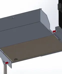 We are evolving the quick-setup camp kitchen! This is version 4 of our LoPro Functional Slide. The V2 version was actually a triple slide so those prototypes were “code-named” the LoPro Triple Slide. So, that’s why you may have heard us refer to it as that. However, the later versions provide the same amount of space with less moving parts, less expense, less weight, and lowers the fridge mounting surface about 1.5″. That allows for more room for your fridge. Since we eliminated the third slide and added a “flipping” third surface, it’s now code-named the “Flip’n Slide!”.