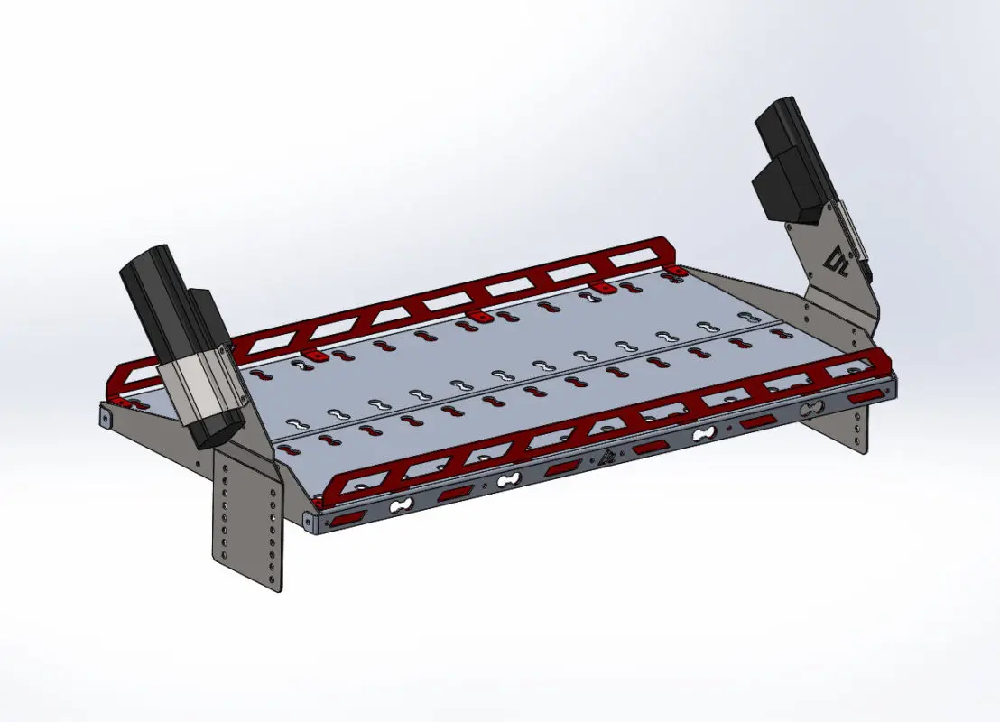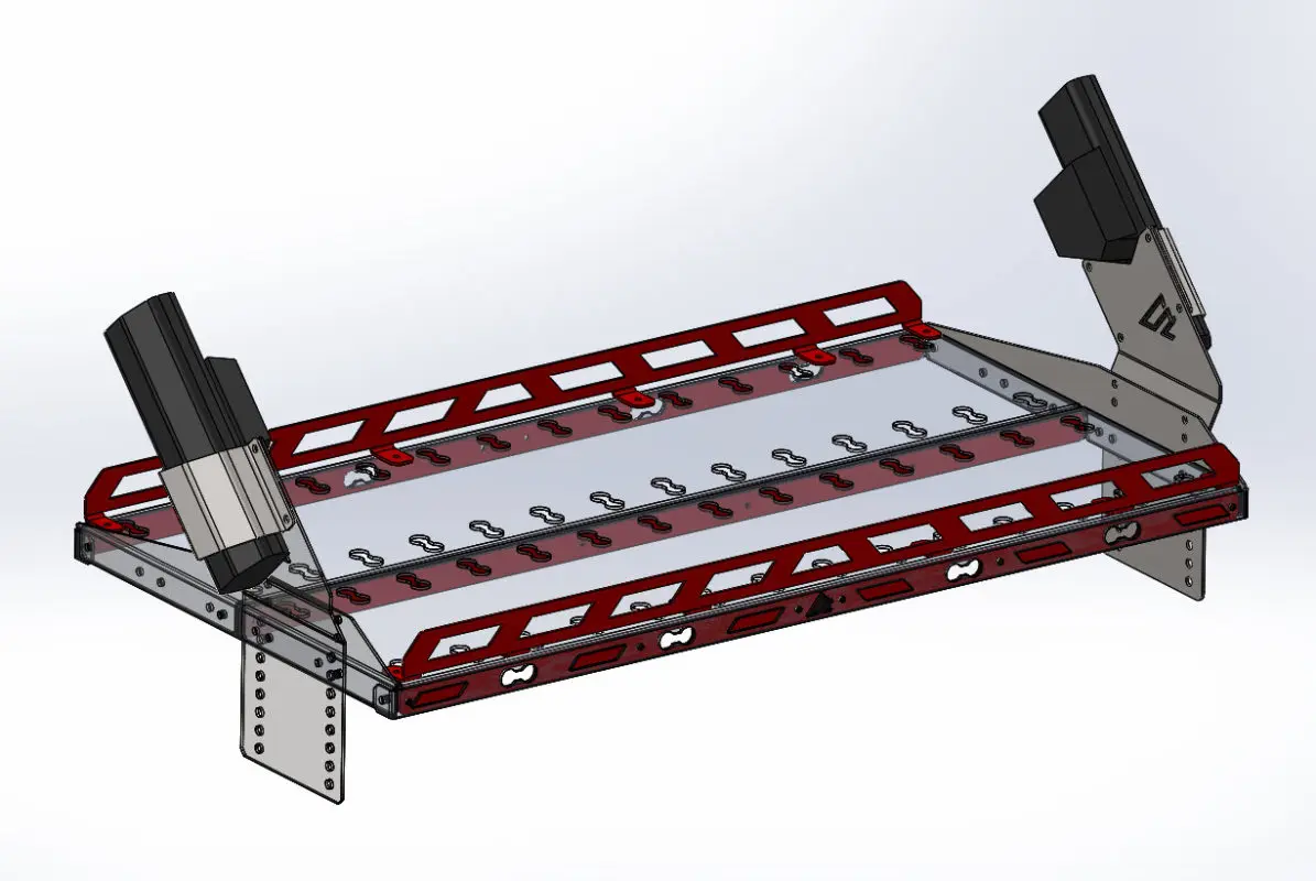 - 1/8″ aluminum for the platform parts. This is where we can save some weight. Due to the mounting method, we are able to reduce the weight of the largest components in the rack.