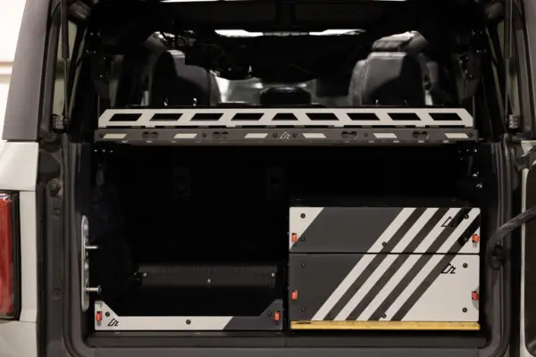 It’s your Bronco. You should optimize your gear however you need to make the most of your adventure. With the vertical cutouts in the front and rear of the shelf, you can use Single Stud Tie Rings or the new VersaTie Hook from Mac’s to make your setup just perfect for your need.Torture Test