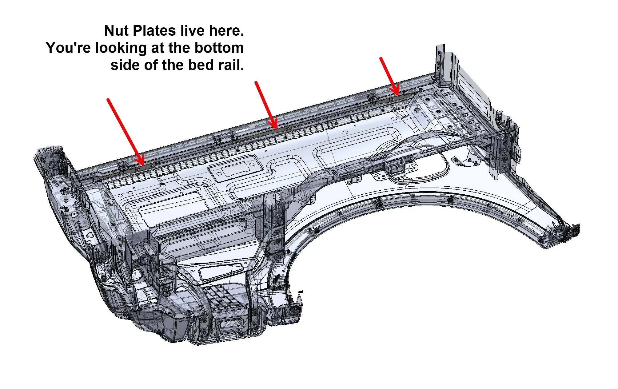 Bolt-In Nut Plate System for Pickup Truck Bed Rails