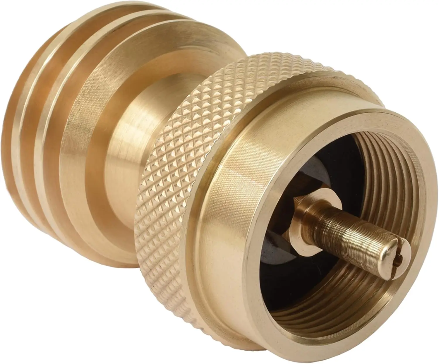 The bleeder valve opens with any flat-blade screwdriver. No specialty tools, no fumbling. Fast and clean at any propane fill station.