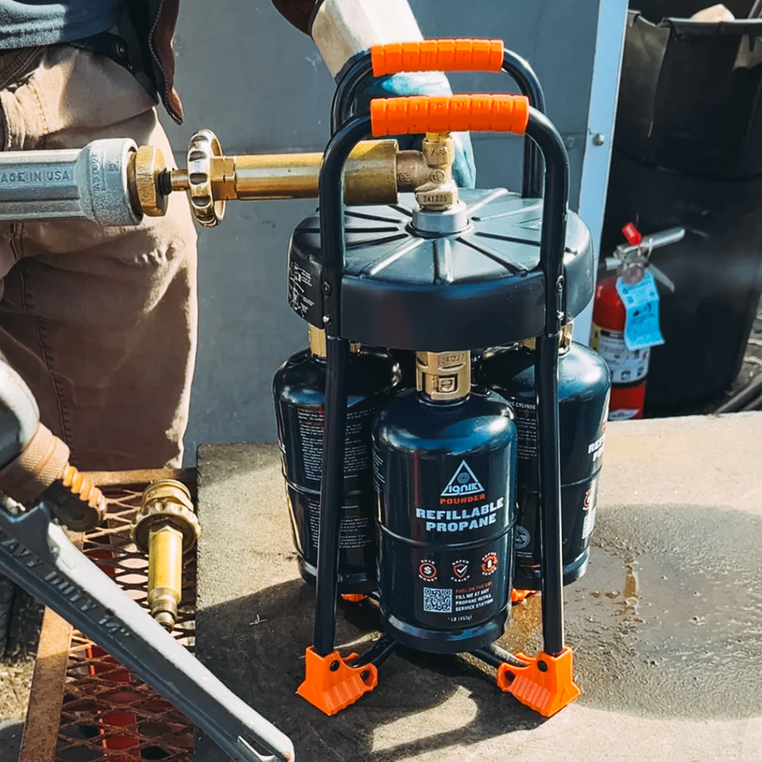 Most 1LB cylinders are engineered to be thrown away. The Ignik Pounder is engineered to last. Permanent screen-printed labels, a precision flat-blade fill valve, DOT and UL certification, and a dark navy finish that looks at home on any rig. We have been waiting a long time to stock these — and they were worth the wait.