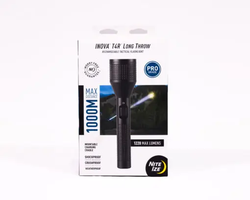 - Kit includes: T4R Long Throw flashlight, INOVA Lithium Ion rechargeable battery (replaceable), USB charging cradle, USB AC power supply, international plug adapters, USB DC/vehicle adapter