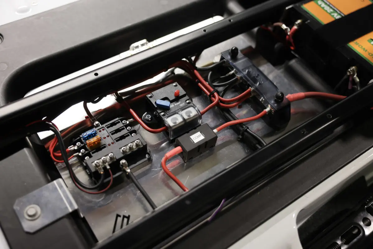 - Crafted from high-quality aluminum, the electrical tray serves as a secure mounting platform for essential components such as bus bars, fuse blocks, mega fuses, and more. This robust tray is designed to withstand the rigors of off-road adventures, providing a stable foundation for your power distribution setup.