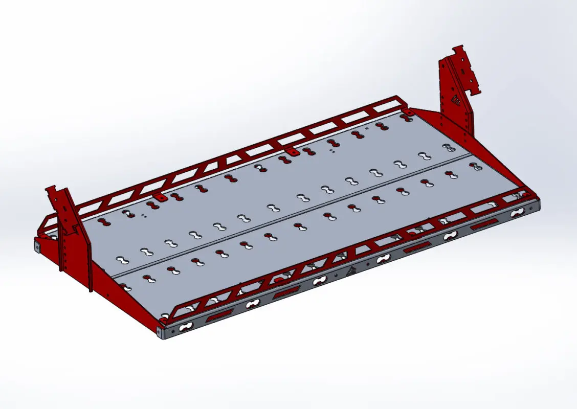 - 1/8″ steel the side spreaders. This ensures that the platform parts are able to strong over the entire span of the shelf.
