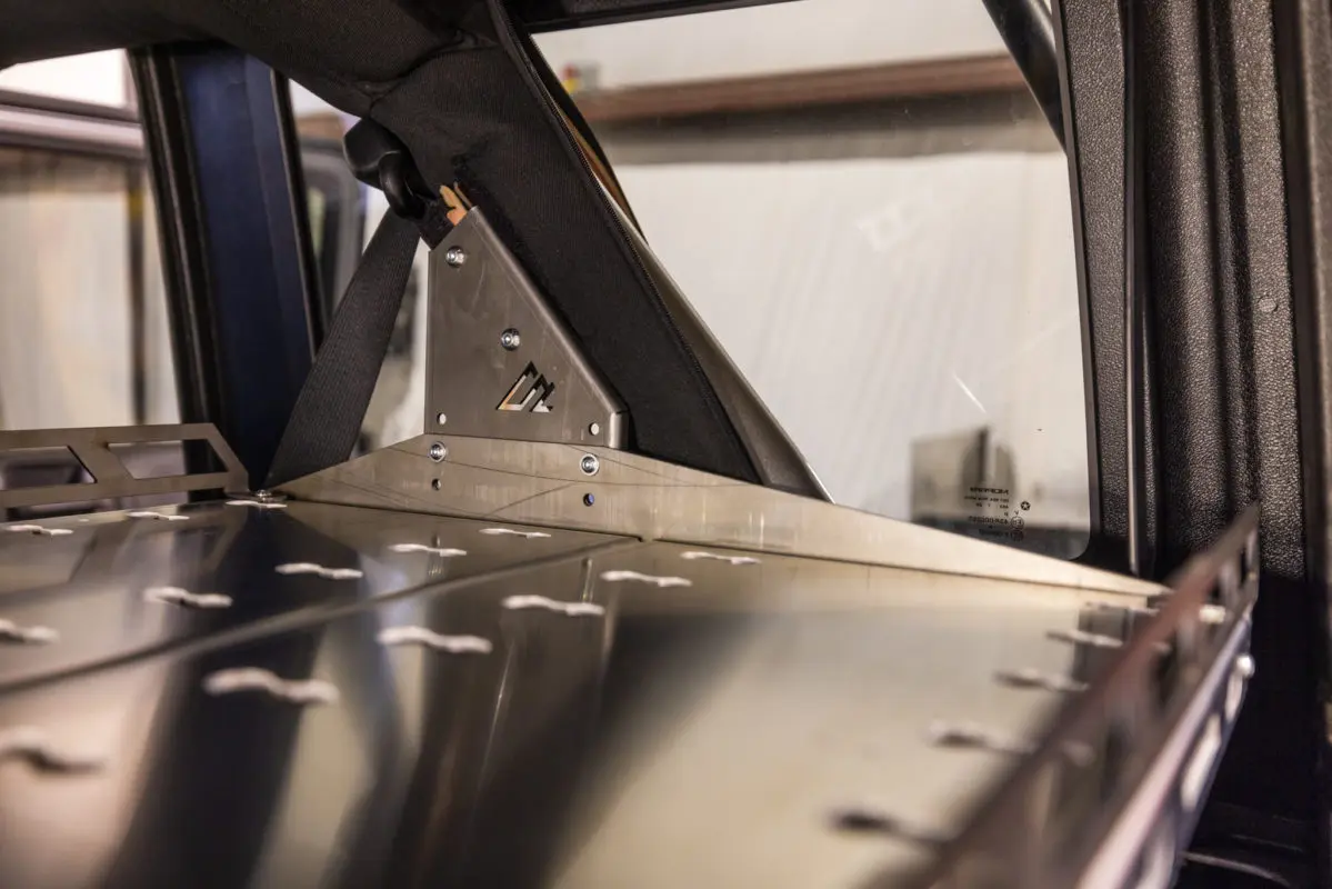 - 1/8″ steel for the vertical supports that attach to the roll bar for superior strength and lateral stability.