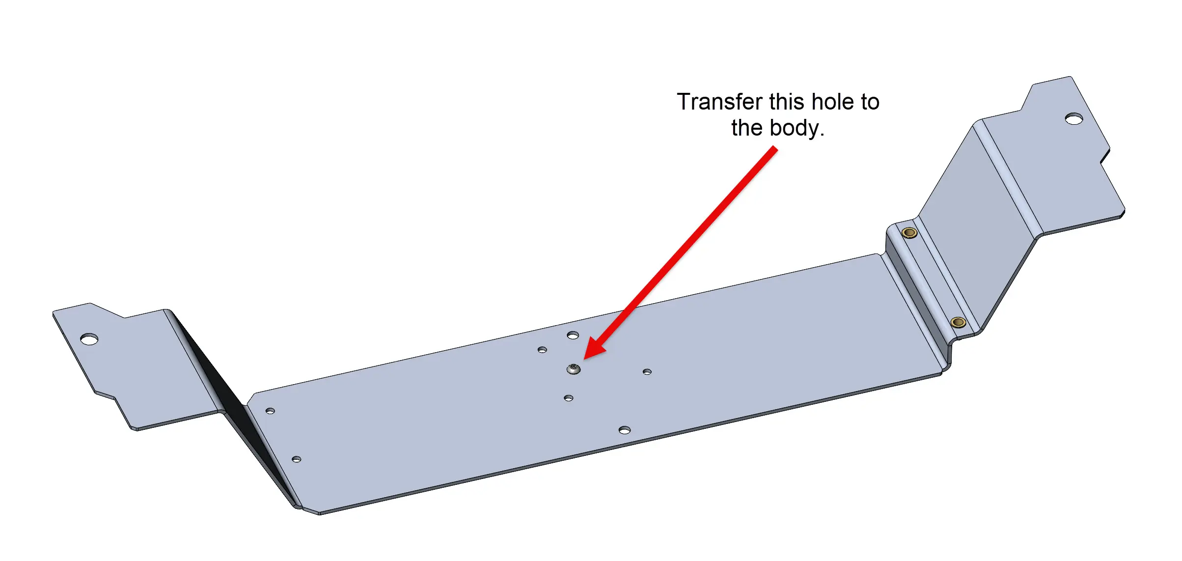 - Mark the center hole to be drilled. The hole you need to transfer to the body is identified in this photo. Mark the hole from above.