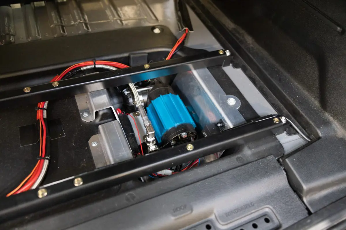 To fill this void, we have created a bracket, specific to the 392 Wrangler, that will hold an ARB single compressor or an Odyssey PC950 battery. If you are also running our M.A.S.S. Platform, you can run the Odyssey BCDC1225D mounted directly to the top of the battery. If you wish to retain the stock cargo cover (small carpeted lid), you will need to mount the BCDC elsewhere in the vehicle. However, if you are running our M.A.S.S. Platform, this setup has plenty of room and works very well.