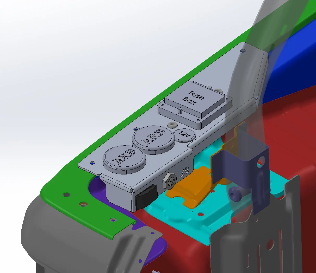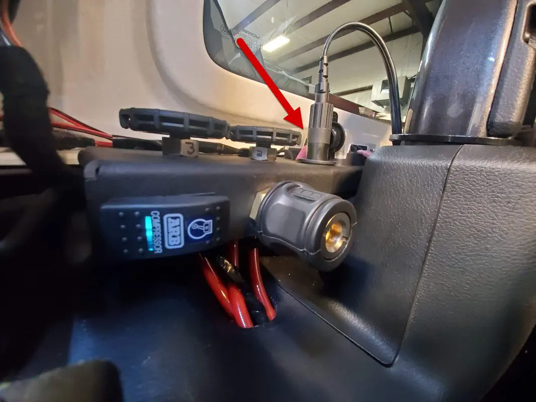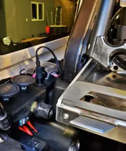 But wait, there’s more more!!! Also built into the remote bracket is a 12V receptacle mounted vertically. This receptacle is intended for those long fridge cords that protrude into the cargo compartment when they are plugged into the OEM rear auxiliary port. By mounting it vertically, the long end of the cord is not in the way of the cargo area.
