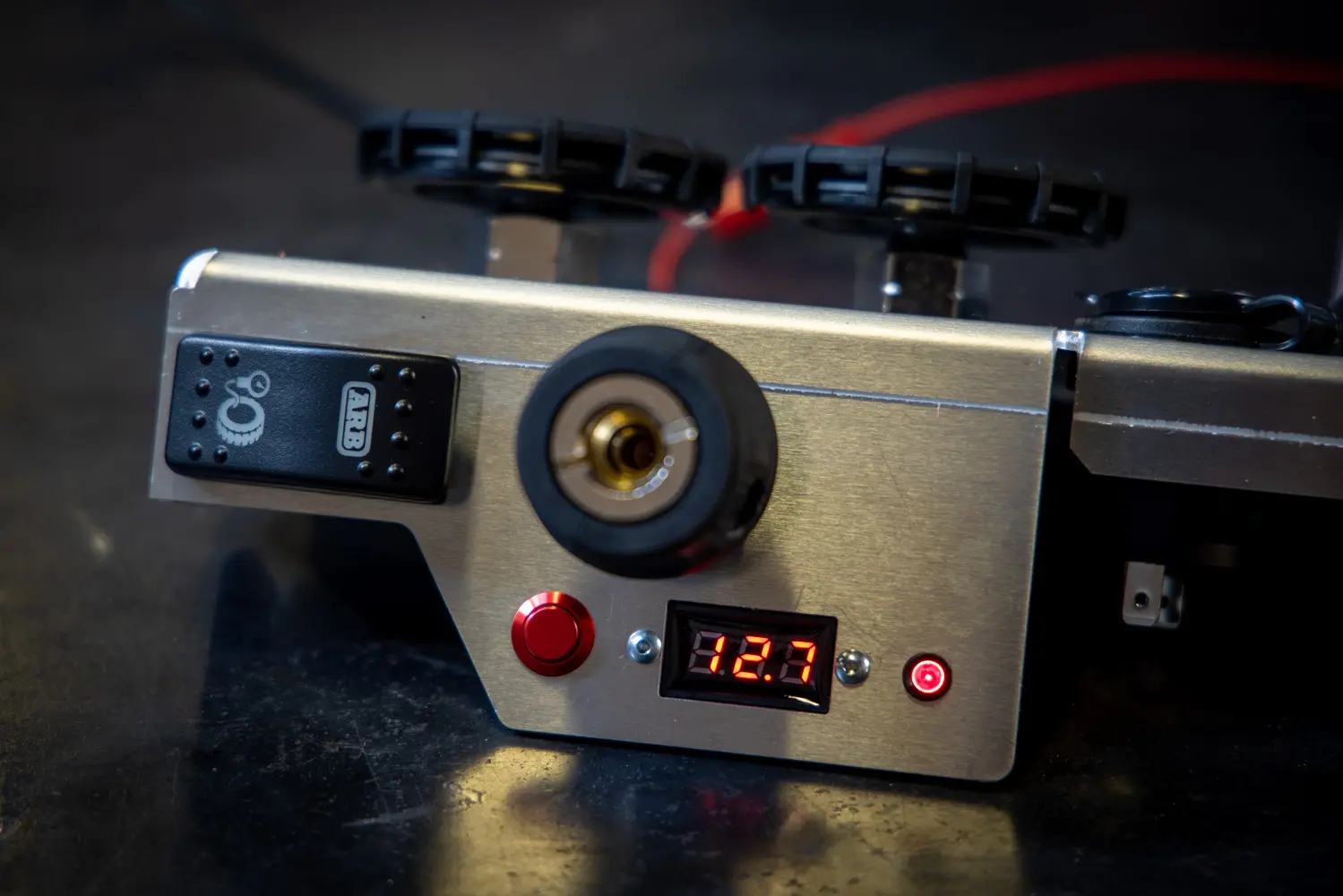 - NOTE: The photos show the filters and switch from the ARB Dual Compressor Kit. Those are not included in this product; they come with the compressor.