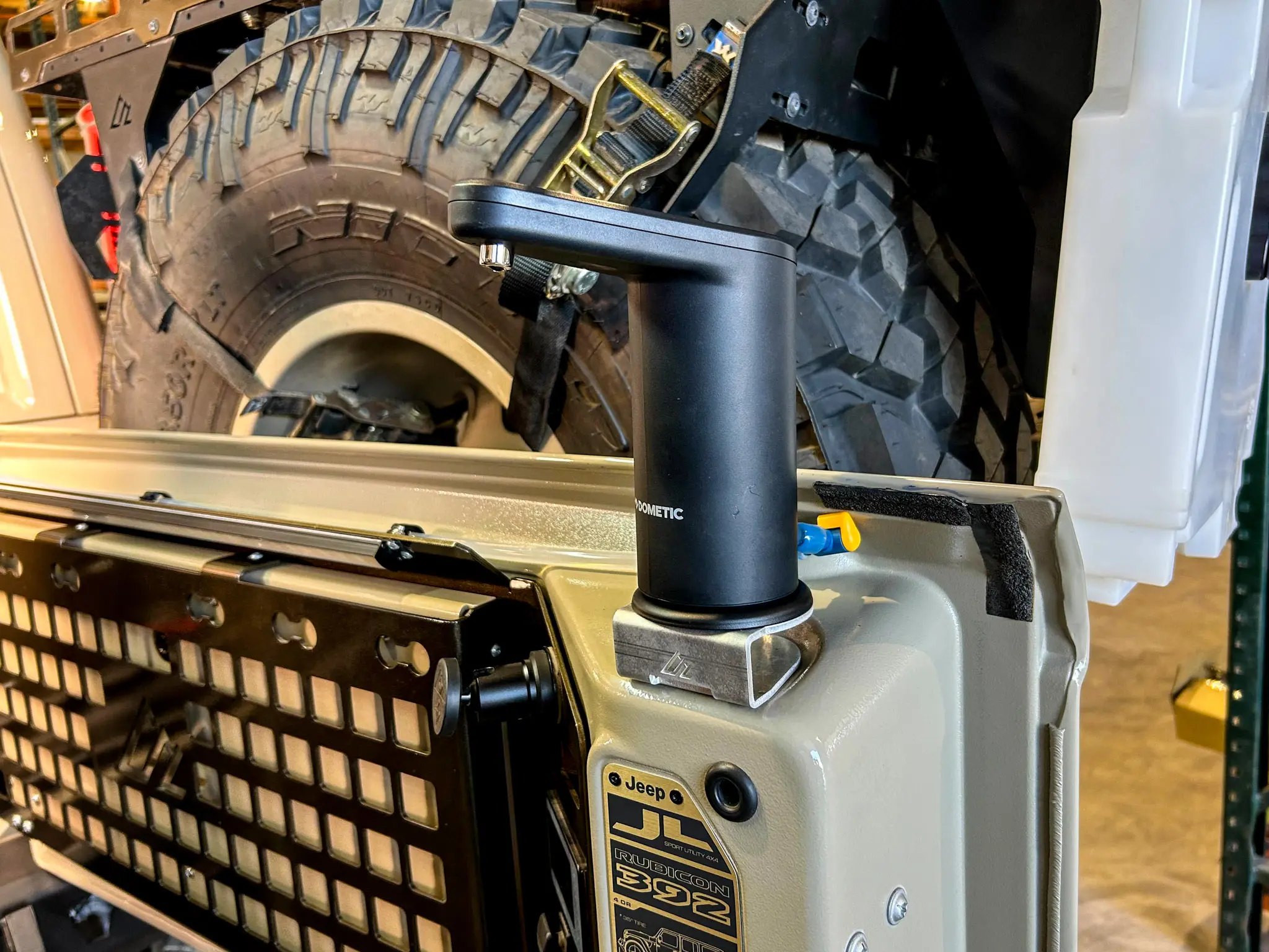 If you’re looking to mount or extend your Dometic Go Faucet away from the Dometic Go Jug in your Jeep JL, this is what you need. Including 10′ of FDA-grade hose, this kit gives you the connections, valve, and magnetic keeper needed remote mount the Dometic Go Faucet. This kit also includes the mounting bracket to secure the Dometic Go Faucet to your JL’s tailgate. The bracket is built from 1/8″ 5052 aluminum for corrosion resistance and light weight.