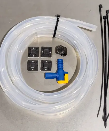 If you’re looking to mount or extend your Dometic Go Faucet away from the Dometic Go Jug in your Jeep JL, this is what you need. Including 10′ of FDA-grade hose, this kit gives you the connections, valve, and magnetic keeper needed remote mount the Dometic Go Faucet. This kit also includes the mounting bracket to secure the Dometic Go Faucet to your JL’s tailgate. The bracket is built from 1/8″ 5052 aluminum for corrosion resistance and light weight.