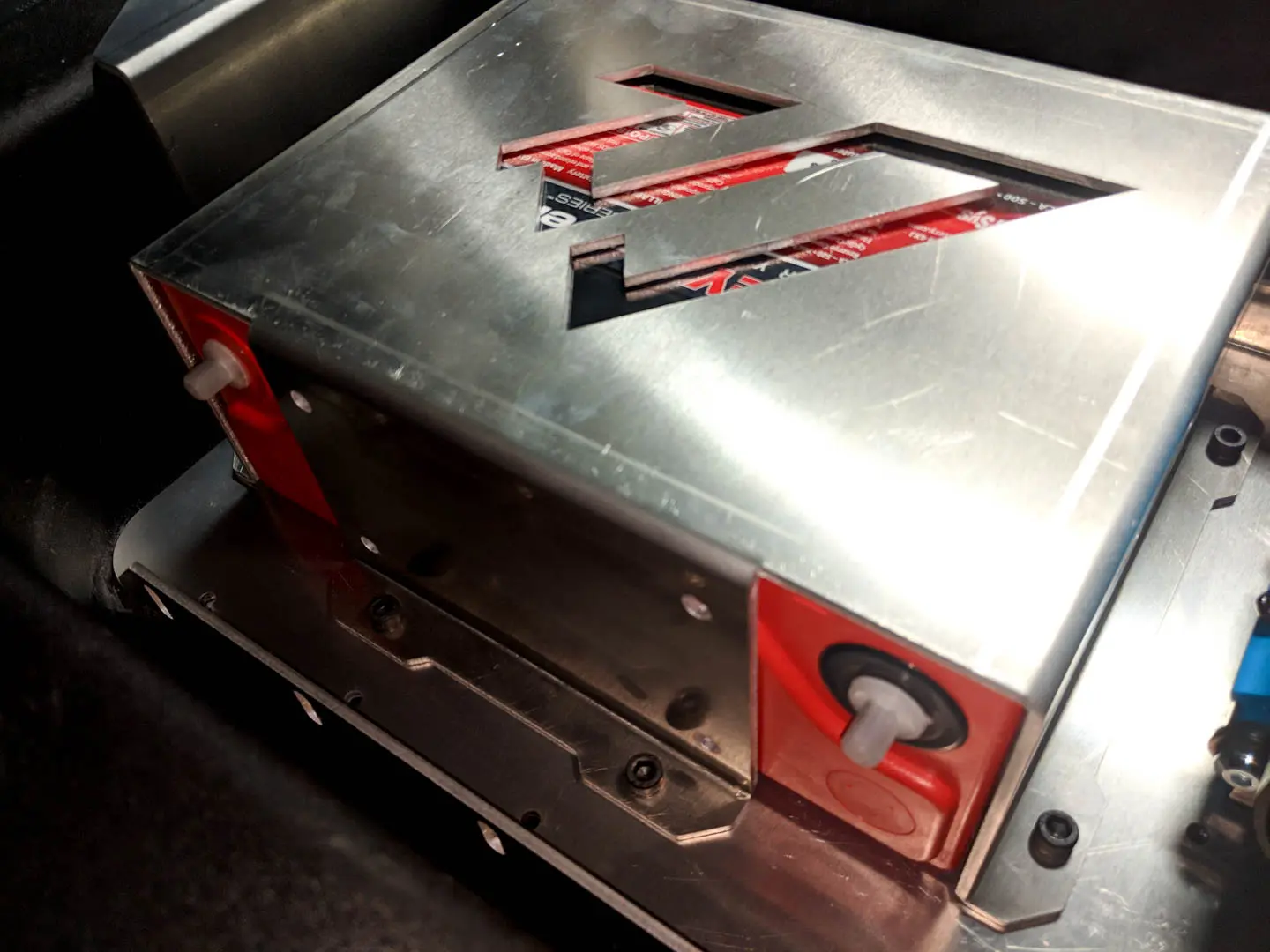 The battery box is extremely secure and has multiple slots cut into it to help aid in cooling. We even cut into the bottom of the tray to allow for that extra little bit of airflow to the battery.