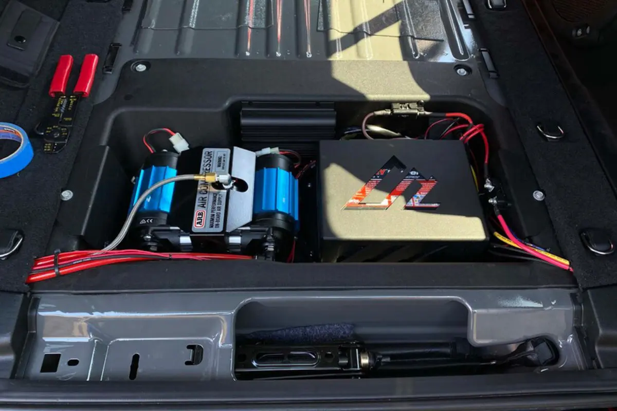 - Proper use of space – most of the time when hauling cargo, it would be very tough to get to anything stored in this cargo compartment. For this reason, it makes sense to mount things in there that don’t need to be accessed often. The compressor and battery are perfect for that space.
