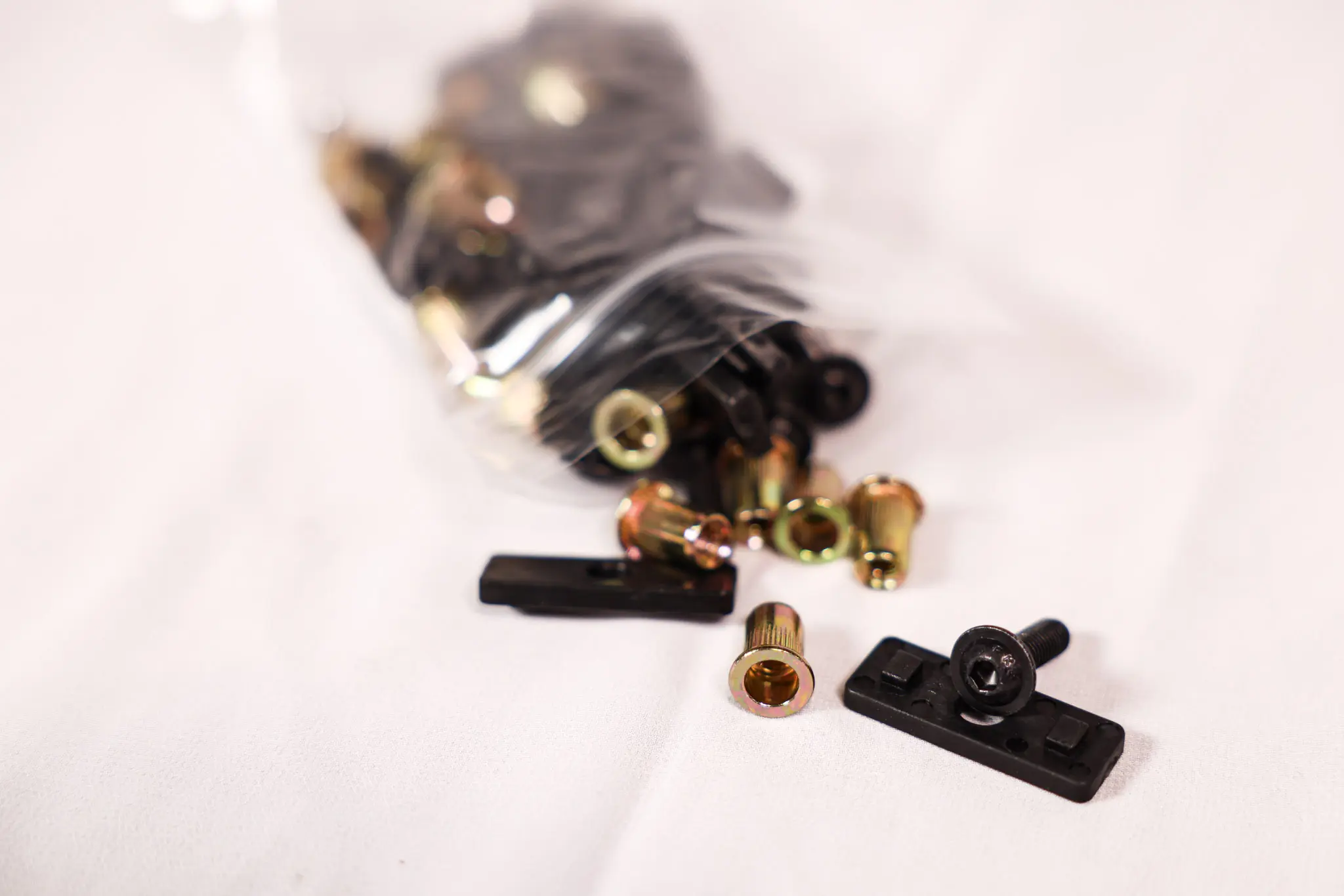 Unlike other companies that sell a “bolt kit”, we have designed a rectangle washer that utilizes existing square holes on either side of the center pin hole. The studs in our plastic washer grab those square holes and provide a very secure mounting system and prevent you from over-tightening the bolt, which in turn, prevents you from smushing (technical term) the plastic around the bolt. Take a close look at the fender without the white plastic clips installed. You’ll notice that there is a split where the bolt goes. Without our plastic washer, the fender could rip out and allow the bolt to slip through the slot. The best way to prevent that with a bolt-only kit is to over-tighten the bolt.