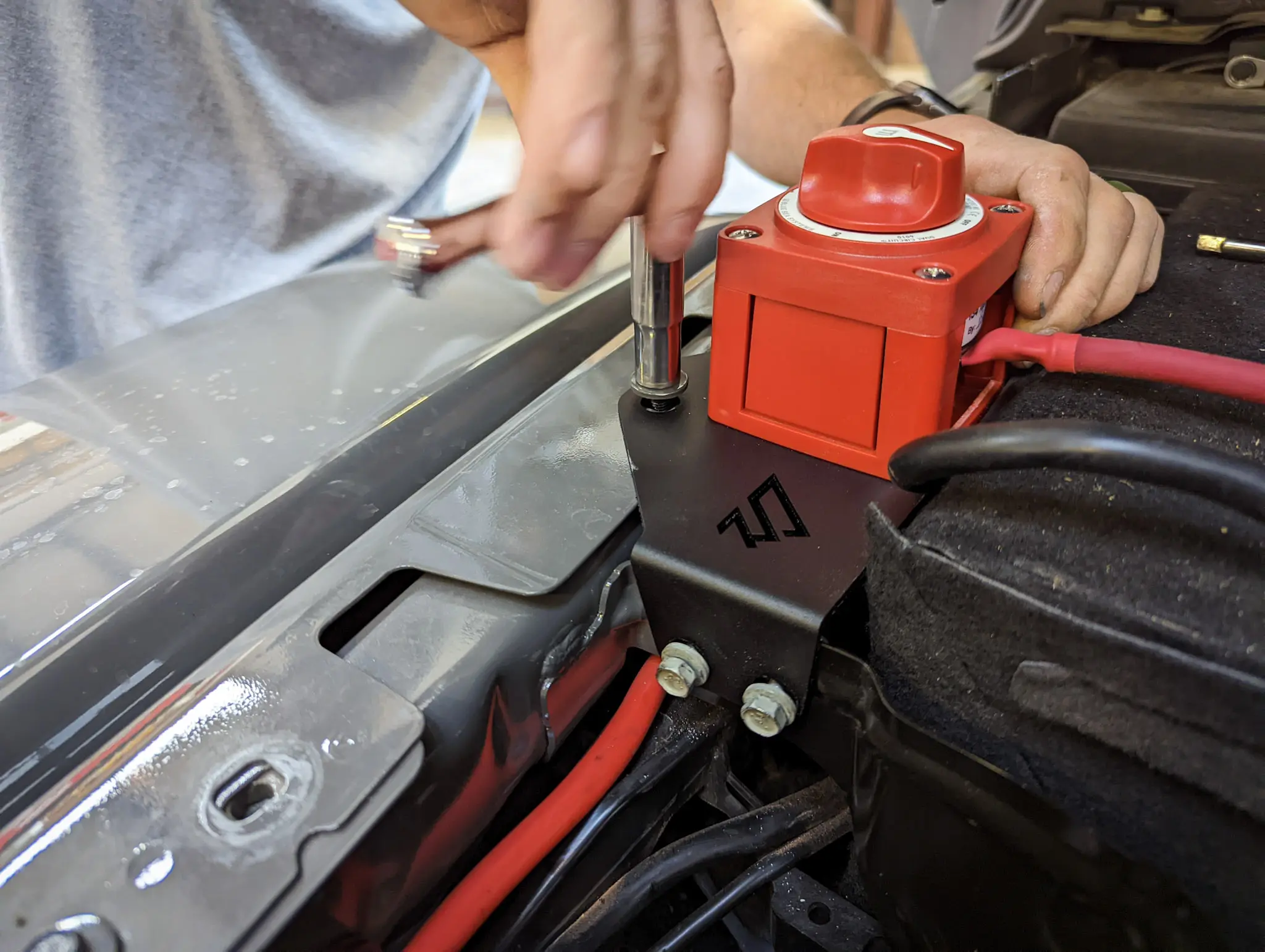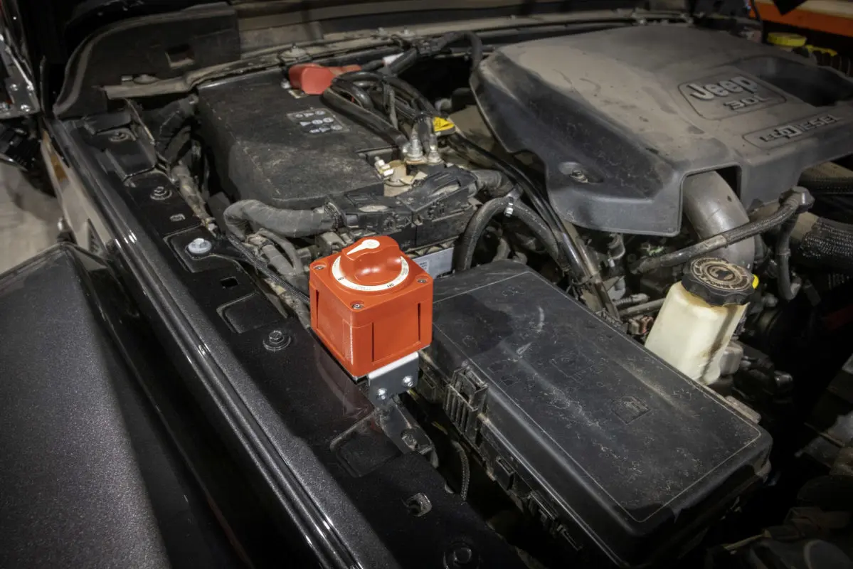 The most foolproof way to ensure your rear accessories are not draining on your cranking system is to break the circuit with a battery cutoff switch. This bracket takes all of the guess work out of mounting your switch in your Jeep JL or Jeep Gladiator.