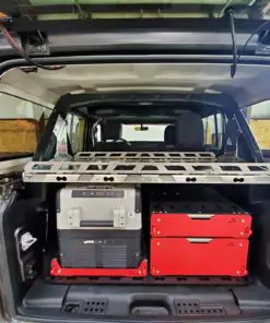 Very happy with the fit and finish on this product. It is well thought out and exceptionally sturdy. The shelf went together and installed easily. I’m waiting on a fridge slide so I will probably need to adjust height again but that will be simple. If anything it might just be overbuilt as I would try to keep heavier items lower in the Jeep. At least I will never have to worry about it being overloaded.