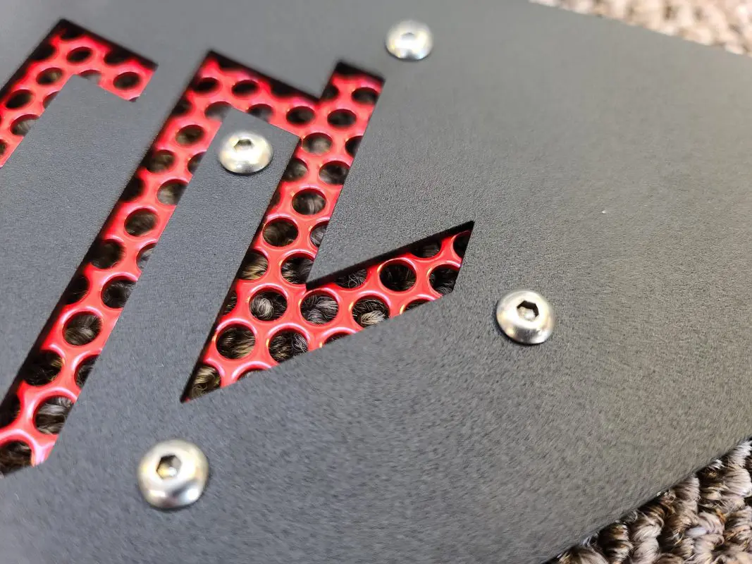 By popular demand, we are now including solid logo plates as the default option. The colors show up much better on the solid plates. Some of the photos here on the page still show the old mesh. We will update those as the new photos start rolling in.Anodized Aluminum Hardware