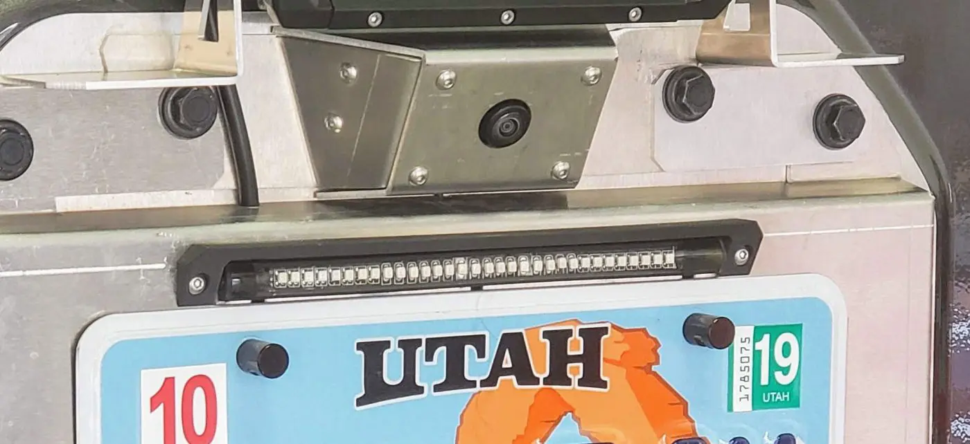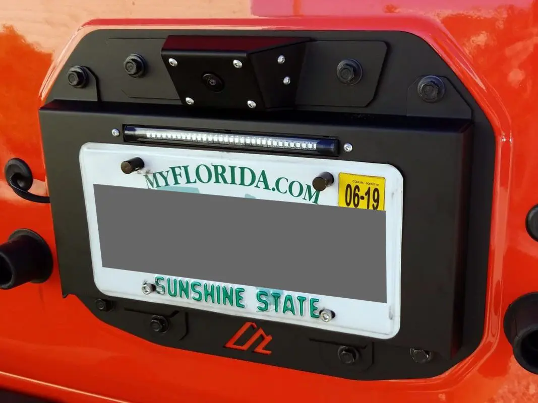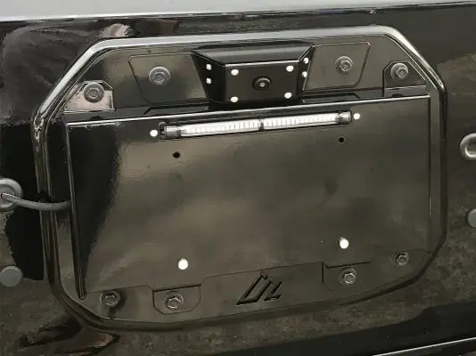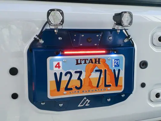 It was very important to us to keep the white light below the brake light as to not dilute the visibility of the brake light. This was the perfect solution. The top two tag bolts are LED lights that shine down directly on the license plate. With the white light shining down, below the third brake light, the brake light is still visible in full strength.