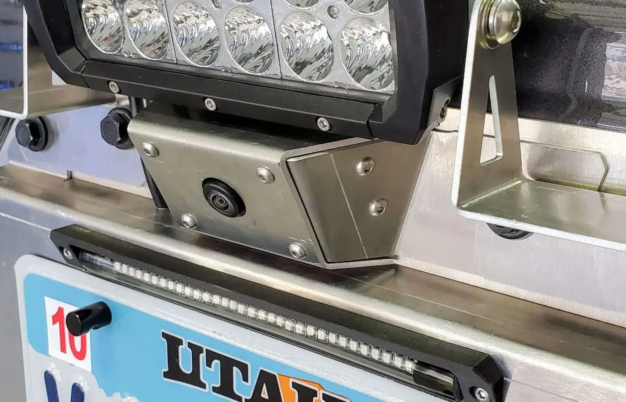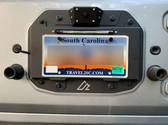 We use the factory camera in a similar position as it was from the factory, but we rotate the camera up a few degrees to make better use of the wide angle lens on the camera.The camera mount is optional as you would not need it if you were running a spare tire swingout.