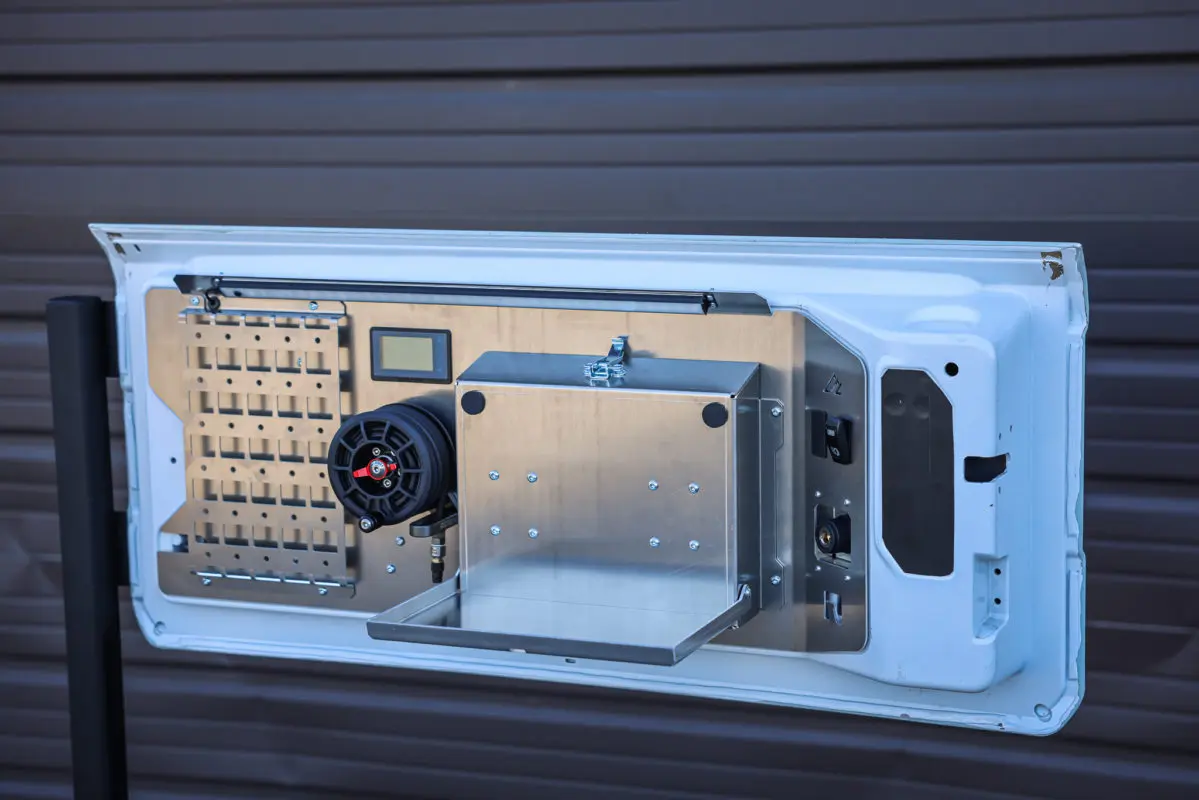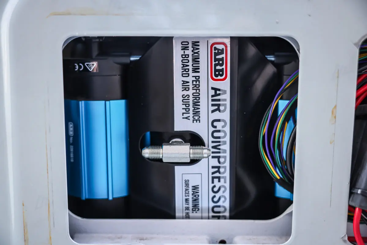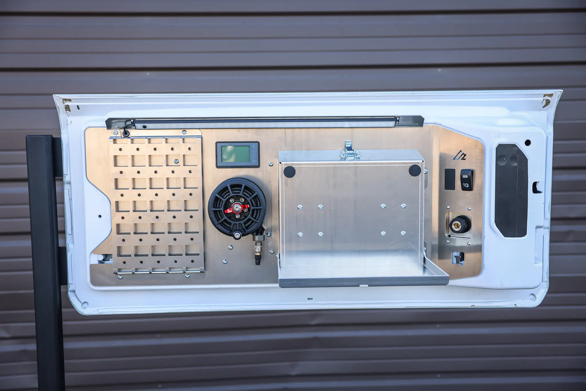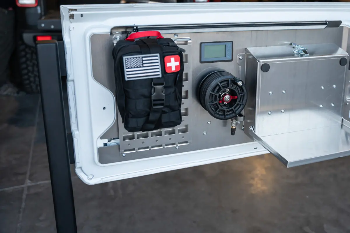 This innovative system replaces the OEM plastic lining on the tailgate and provides a robust, versatile mounting solution for your twin ARB Compressor. But that’s not all—it also offers the option to mount ARB’s tire pressure control system, an LCD battery monitor, and the Apex Performance Compact Reel System!