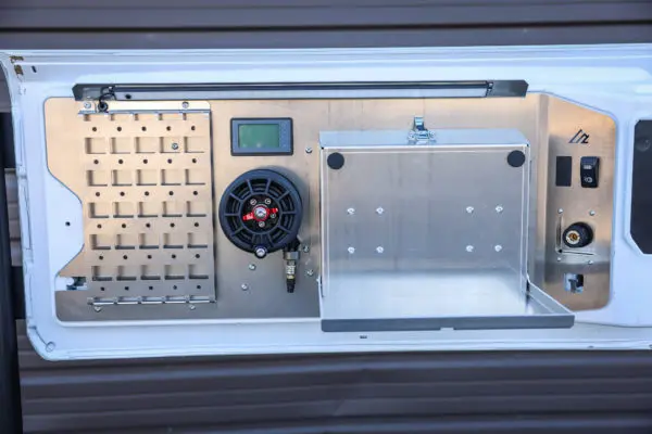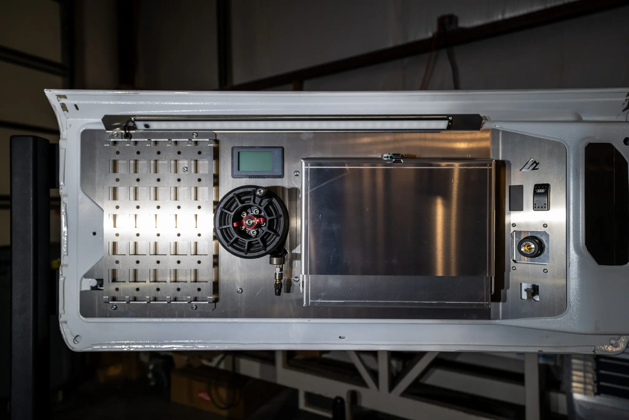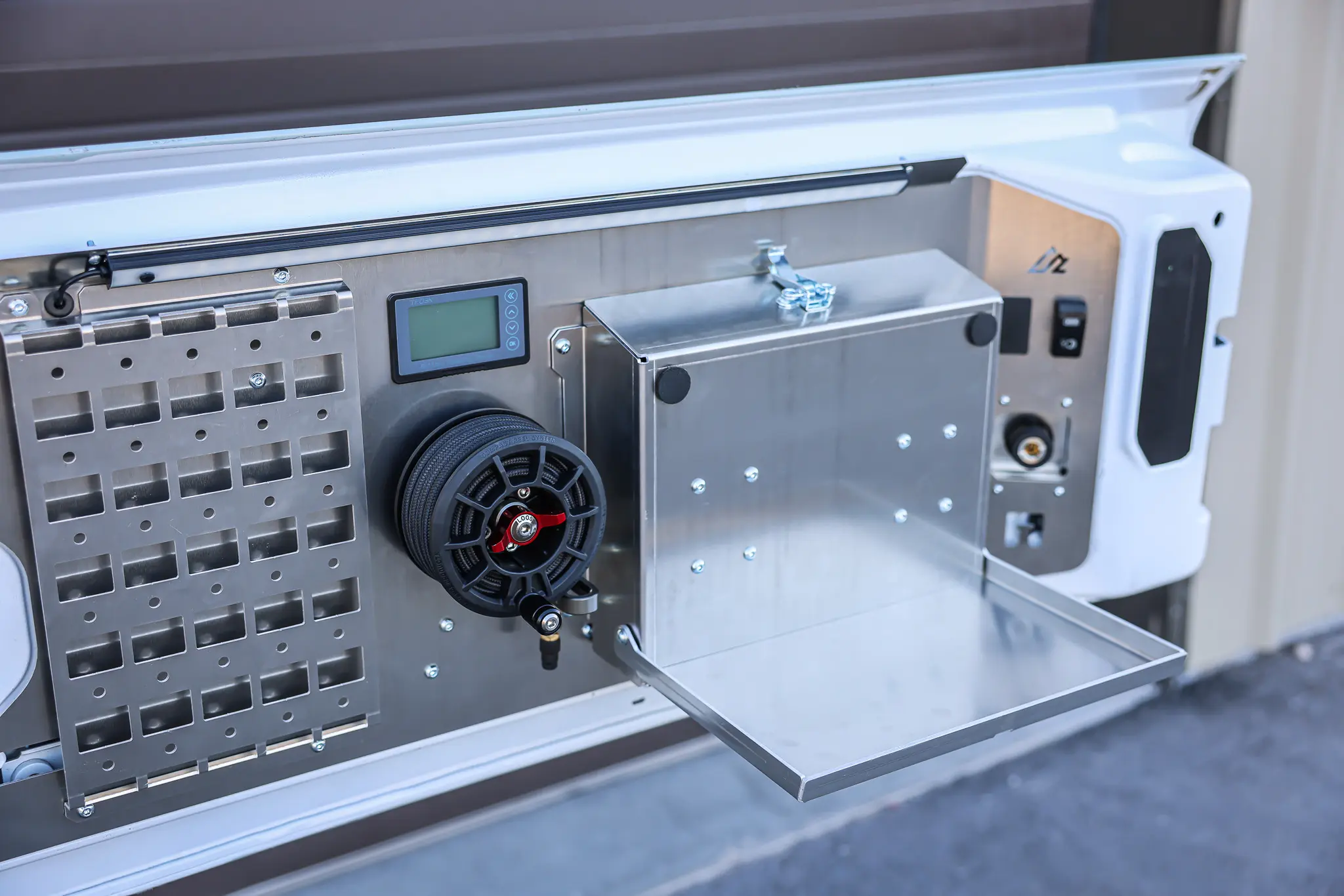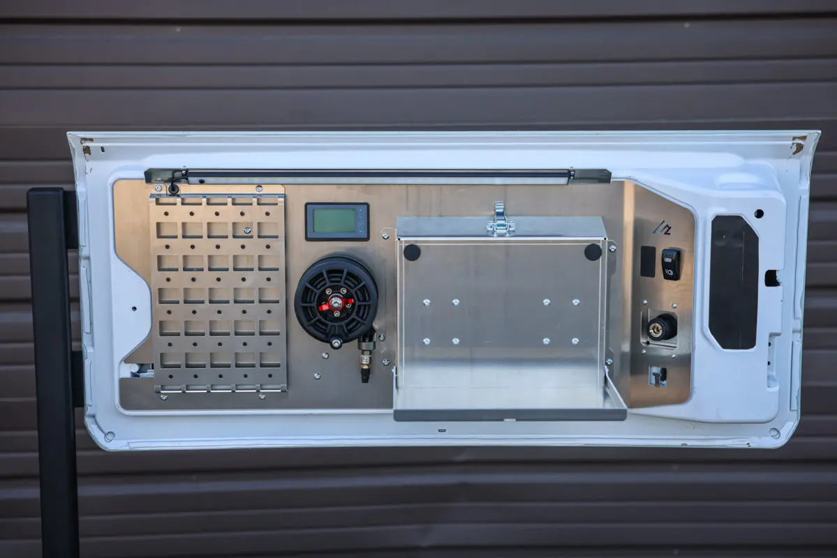 This innovative system replaces the OEM plastic lining on the tailgate and provides a robust, versatile mounting solution for your twin ARB Compressor. But that’s not all—it also offers the option to mount ARB’s tire pressure control system, an LCD battery monitor, and the Apex Performance Compact Reel System!