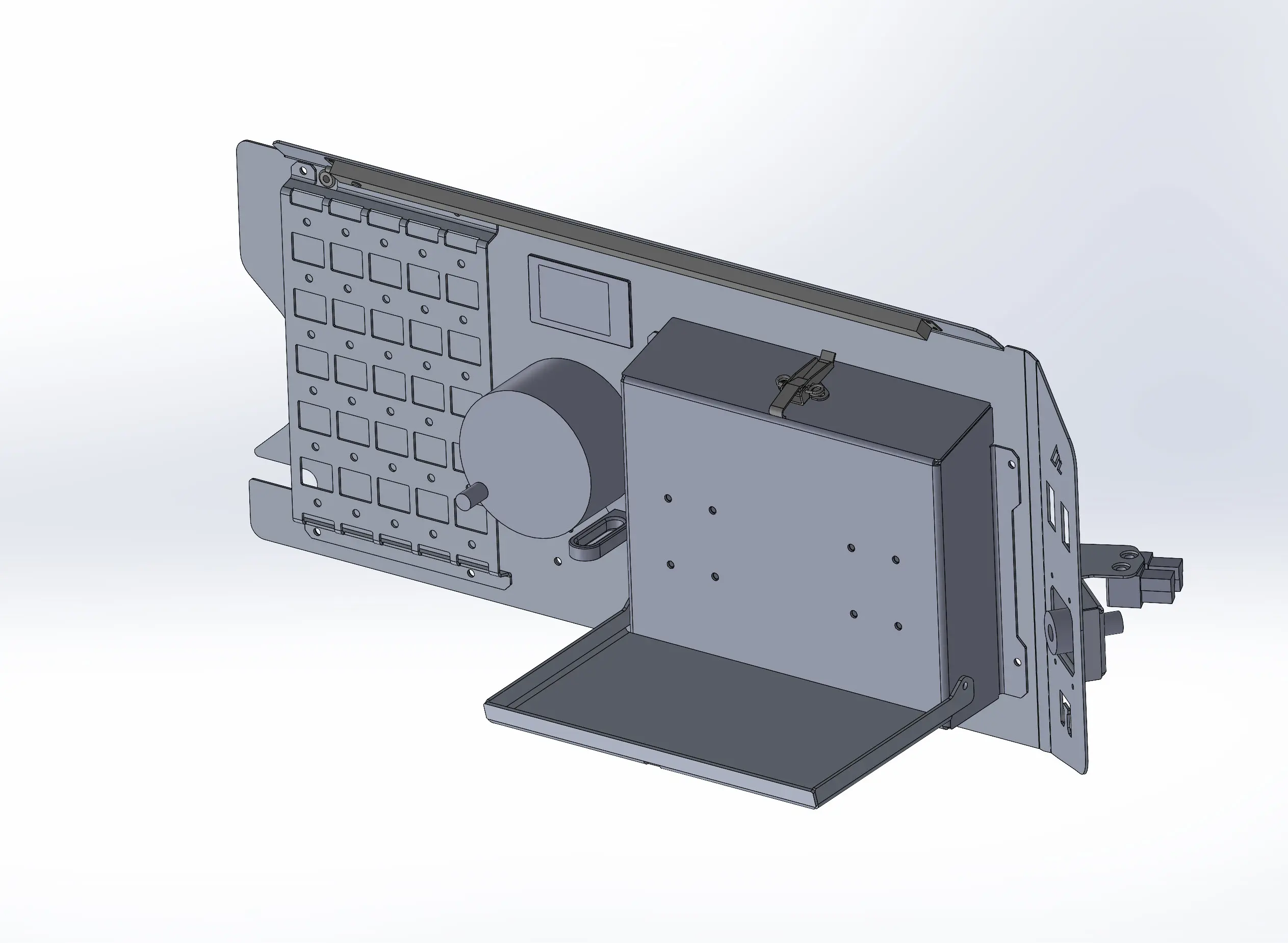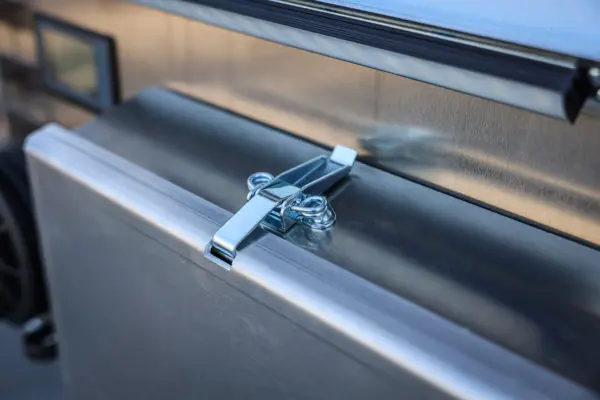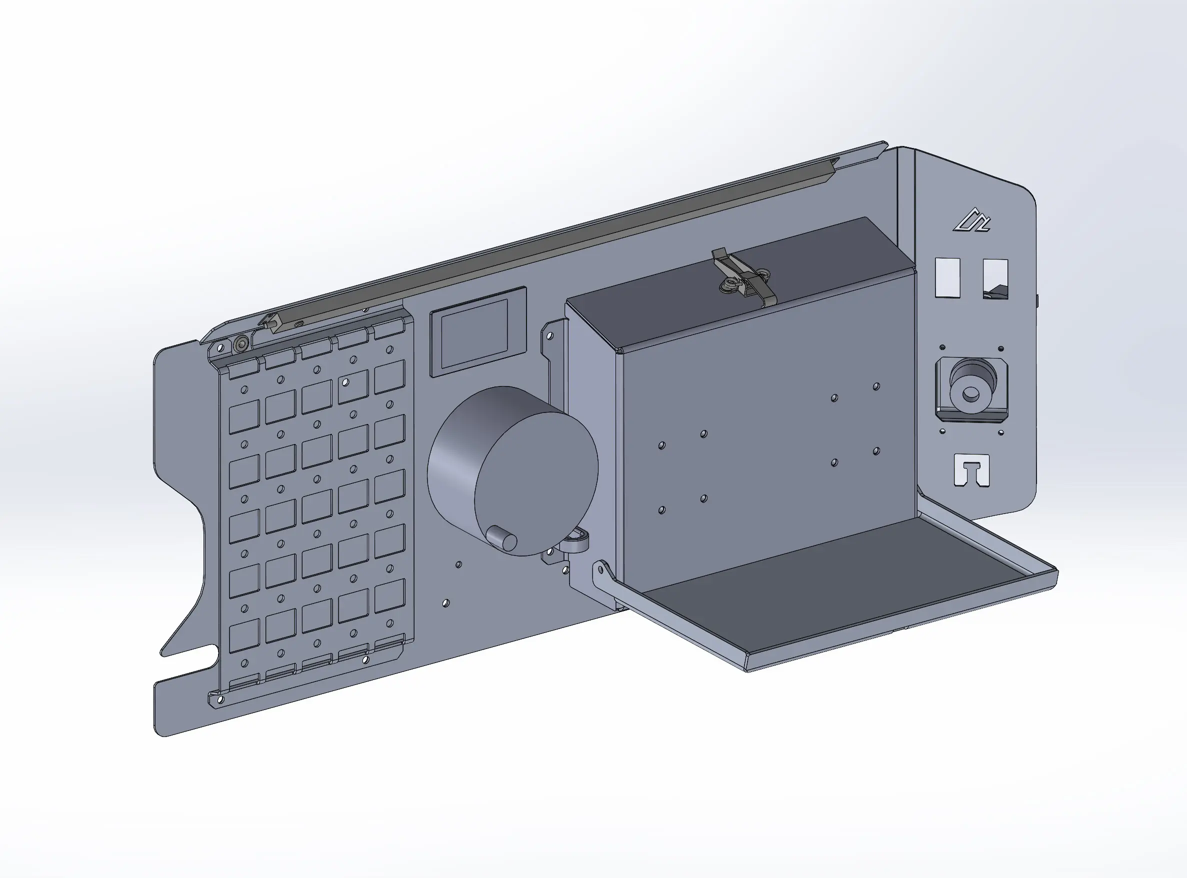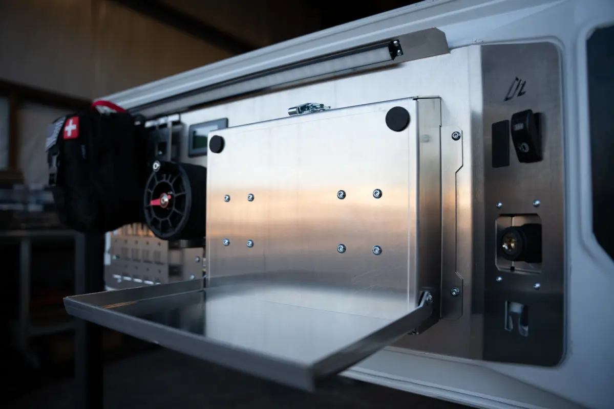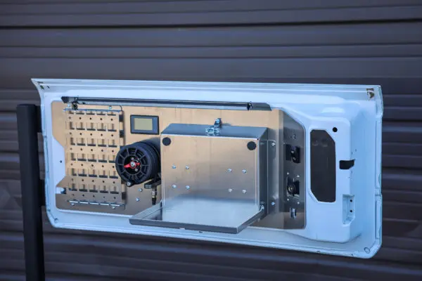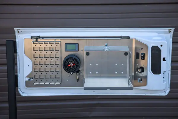 This is where the twin ARB Compressor gets mounted and gives you a latchable table to store your side-of-the-trail drink while airing up.