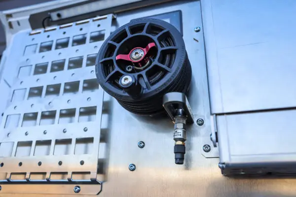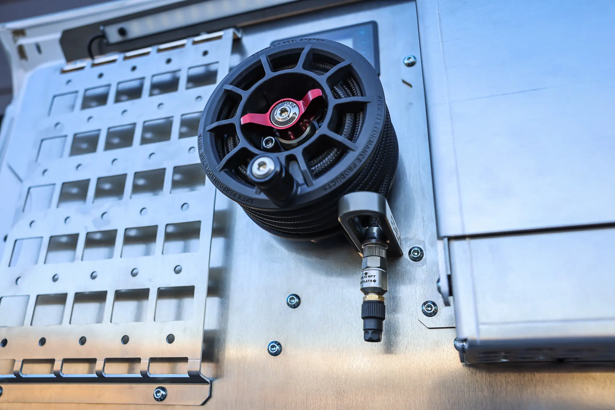 The TACS is designed to be in use with Apex’s 20′ compact reel system so that you can seamlessly air up all 4 of your tires from the rear of your Jeep. And then neatly store the air hose when you’re done! They really knocked it out of the park with this product.