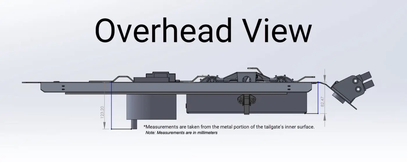 We know clearances are tight in the rear of these vehicles. With the hose reel and compressor mounting box protruding into the storage are a little, we built this diagram to show the overhead view and give you a solid idea of where this all sits in relation to the cargo space.