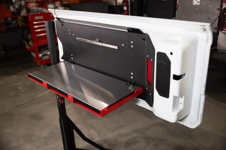 The upgrade kit includes a steel support bracket that resides below the work surface, delivering unmatched sturdiness. This ensures your tailgate table can handle the demands of heavy use without bending or wobbling.