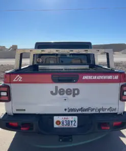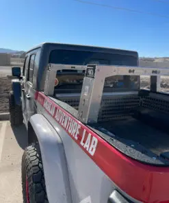 This is our Jeep JT Aluminum 12″ Bed Rack! This version mounts to our Bed Rail Attachment System that is purchased separately.