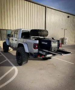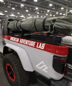 This is our Jeep JT Aluminum 6″ Bed Rack! This version mounts to our Bed Rail Attachment System that is purchased separately. NOTE: The price shown is for one crossmember and the hardware needed to mount it to your Bed Rail Attachment System. You can choose to buy up to 3 Bed Rack Crossmembers for you Jeep Gladiator. Each crossmember weighs in at around 15lbs, making it a great option to save weight and still be strong enough to mount your RTT’s, Regular Tents, Canopies, etc. These are built mostly out of 5052 aluminum with some steel supports that connect the two sides together. We recommend getting these powder coated or painted prior to install to prevent the steel from oxidizing. With the 6″ bed rack you’ll be able to have piece of mind when adding on luggage or other accessories that it won’t be towering over the top and creating more drag and chance of hitting it when driving through the trees or parking in your garage.Dimensions: