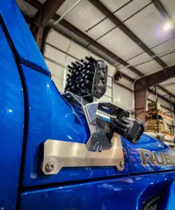 Introducing the Ultimate A-Pillar Brackets for the Ultimate Off Road Machines! 🚙 Are you a proud owner of a Jeep Wrangler 392 or a Jeep Gladiator Mojave? Well, buckle up, because we’ve got something that’s going to make your off-roading experience even more exhilarating! Super Light and Strong! Our brackets are like that elusive six-pack you’ve been working on for years – strong and lightweight! Weighing in at a mere 12 oz. per side, these brackets are built from 5052 aluminum, so they’re tough enough to handle the trails while staying as corrosion-resistant as your best dad jokes. No need to slap on a fresh coat of paint – these babies rock the “raw” look effortlessly, and all it takes to keep them looking sharp is a little 3M Scotch-Brite buffing. Just like maintaining that rugged, “race car look” of yours – easy peasy! Classy and Low-Key Logo Placement We get it, guys. You don’t want to be a walking billboard. That’s why we tucked our logos away below the side cubes, so you can keep things classy. No giant logos here to steal the show, just like how you prefer to blend into the background at your cousin’s fancy dinner parties. 🤣 A Couple of Friendly Warnings First, these brackets are custom-tailored for your Jeep Wrangler 392 and Jeep Gladiator Mojave. Why? Because the cowl on these bad boys is higher, just like your standards when it comes to vehicles. We like to keep things in sync. Second, we didn’t cut holes for your ditch light pods. Why, you ask? Well, because there are about a gazillion different pod lights out there, and we couldn’t possibly predict where you’d want them. We’ll leave the hole-poking to you – it’s a manly task, after all! Third, these come with zinc-coated hardware. So, if you want your rig to look as tough as it performs, these brackets are the answer. Get yours today, and hit the trails with confidence and style!👍 The lights used in the photos above are:- Smaller cubes pointed outboard – Diode Dynamics SSC2