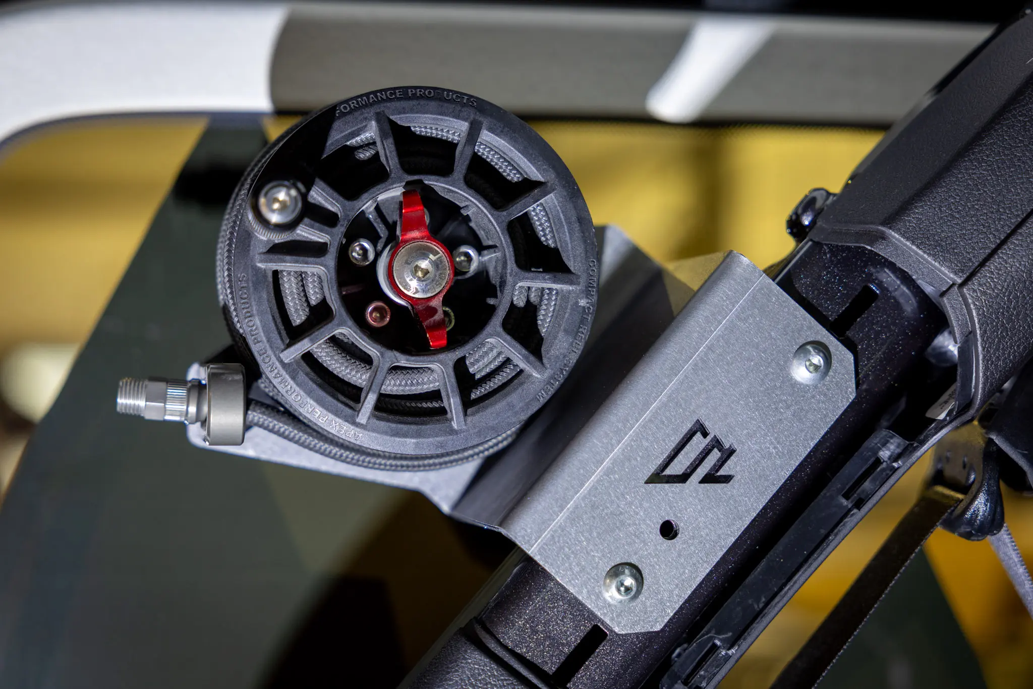The defining feature of this mount is its outboard offset design. By pushing the Apex CRS reel outward from the C-pillar, this bracket preserves valuable cargo space and maintains proper clearance for the AAL MASS Cargo Shelf. This design keeps the reel tucked tight to the vehicle while avoiding interference with rear storage systems.