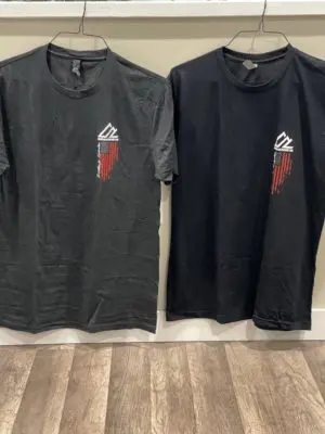 These may be the most comfortable shirts on the market. These with District Made brand shirts are 50% Polyester, 25% Cotton, and 25% Rayon for long term durability.