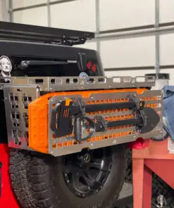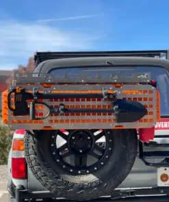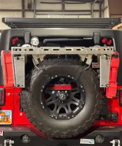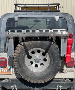 NOTE: This shelf is designed to handle weights up to 100lbs evenly dispersed over the entire platform. However, this is highly dependent on the mounting method for your spare tire. To achieve maximum weight capability, it is important that your tire be mounted to a sturdy swing out tire carrier (not directly to the tailgate).