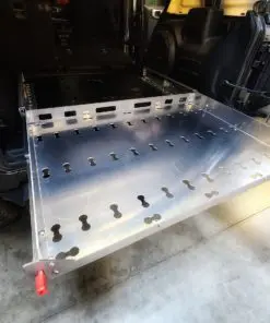 - Bi-Metal Construction: 1/8″ 5052 aluminum for tray and slide brackets, 1/8″ carbon steel front plate and rear plate for added strength