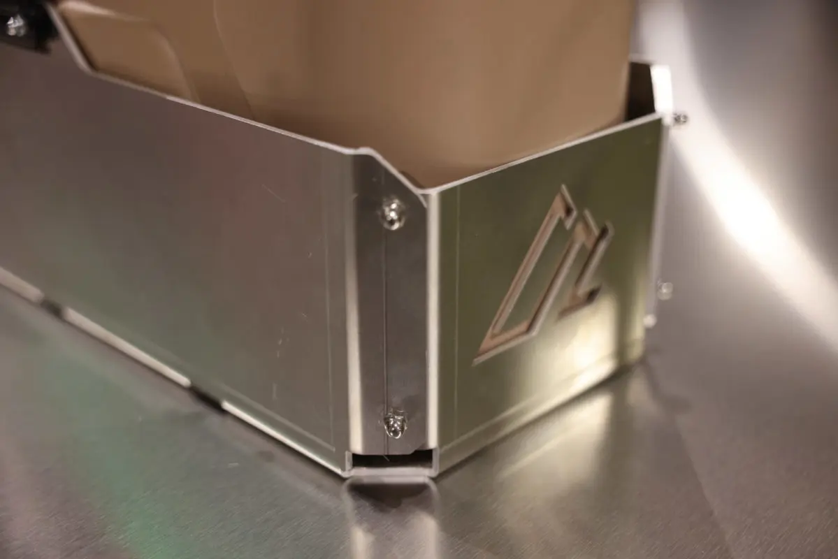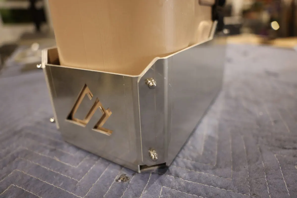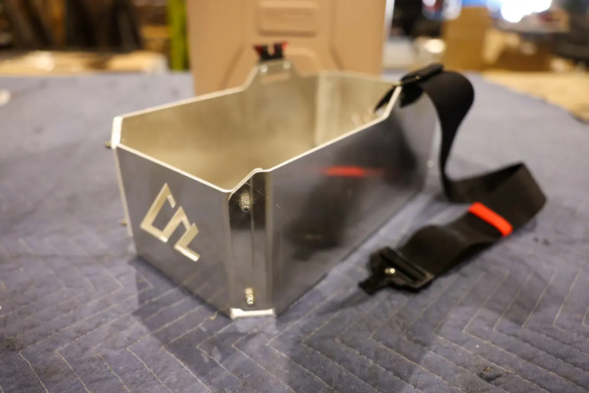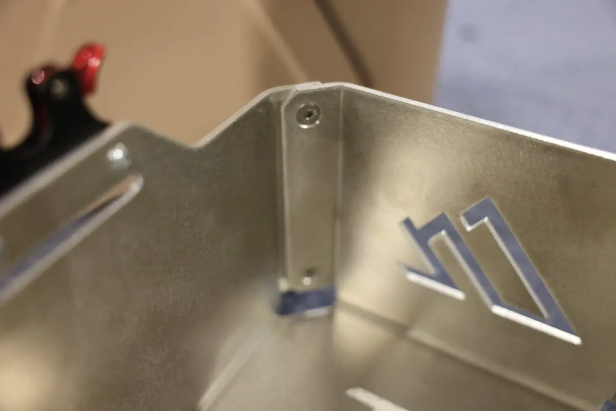 These mounts are built from 3mm (1/8″) 5052 aluminum for durability, weight savings, and corrosion resistance. They do not contain any aluminum welds that are suspect to failure over the years. The mount structure is firm thanks to the (8) flat head zinc-coated bolts and zinc-coated cap nuts. The bolts are installed from the inside out to ensure the can does not come into contact with the fasteners.