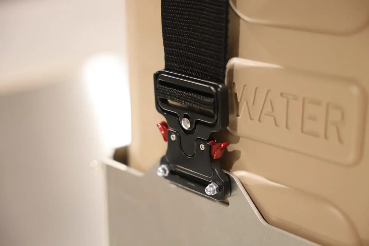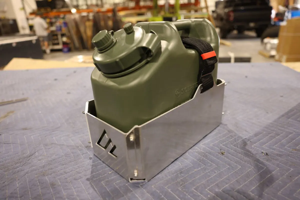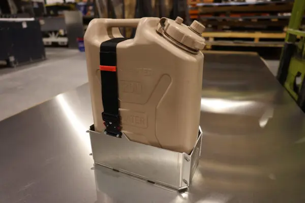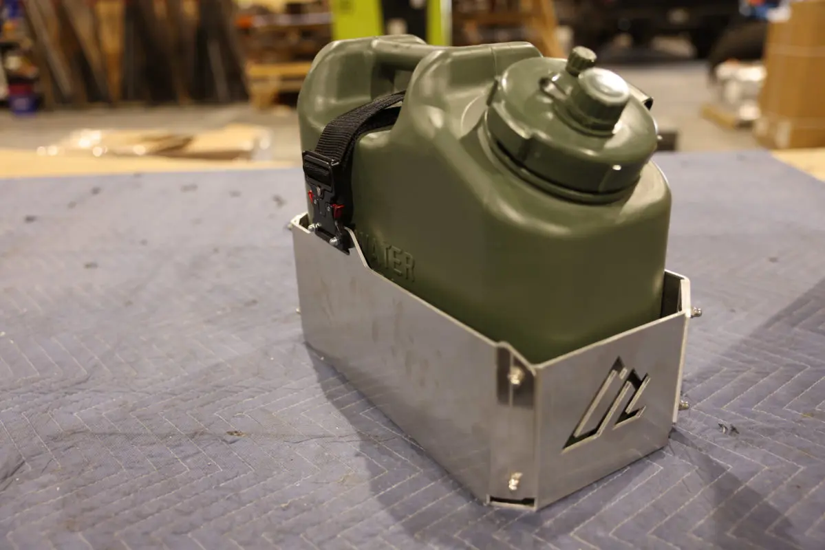By popular demand, we happy to release our Universal NATO Jerry Can Mount. This product is intended to allow quick and easy removal of the jugs and features a secure, rattle free design. They nylon strap ensures you can provide tension on the cans so they don’t bang around in the mount.